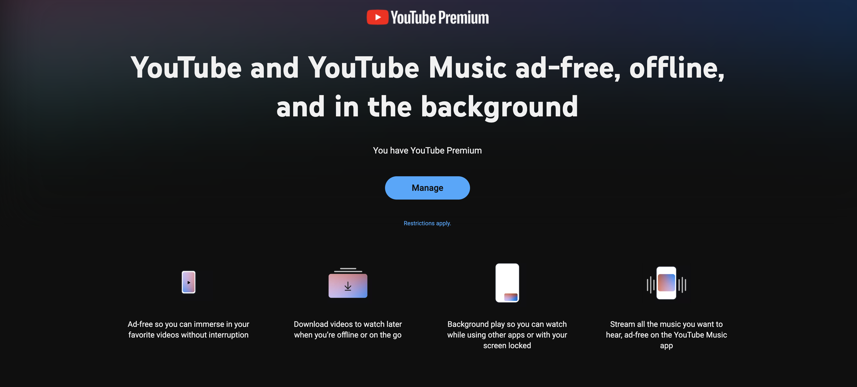 유튜브 프리미엄은 말 그대로 유튜브 내 모든 콘텐츠를 광고없이 무제한으로 즐길 수 있는 유료서비스랍니다. 백그라운드 재생과 오프라인 저장기능 등 다양한 서비스를 제공받을 수 있는 유료서비스입니다. 이전 월 10,450원이었던 요금이 2023.12.08일 월 14,900원으로 기존 대비 43% 인상되었습니다.